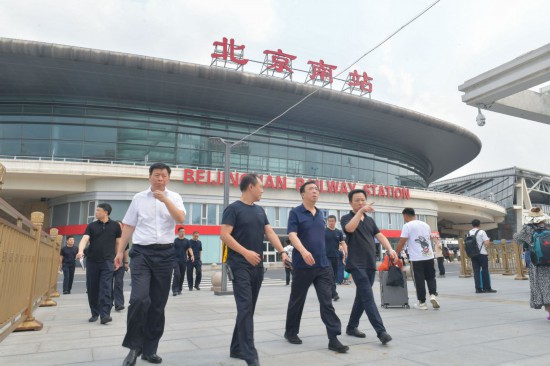 2023年7月26日,董亦军同志(前左三)在北京南站进行实地踏勘调研。新华社发