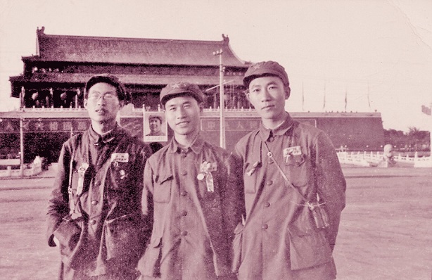 1949年9月30日,吴群、林杨、杨振亚(左起)在天安门前留影