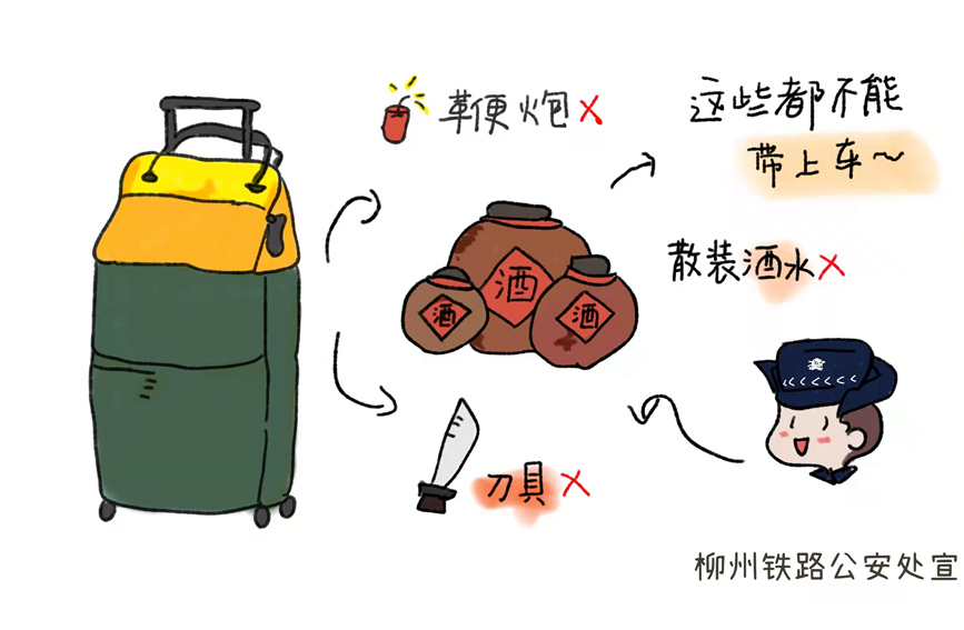 春运期间,来往火车站乘车的旅客增多,旅客携带违禁品的情况时有发生。邓璇将常见的一些乘车常识绘制成漫画进行宣传,就是希望旅客群众能提高安全乘车常识,认真遵守相关规定,平平安安乘车回家过年。(陈燕、韦生辉)