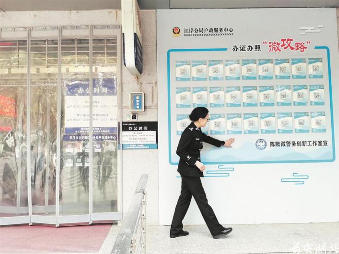 在江岸区公安分局户政服务中心,27个大大的二维码占满了整整一面墙。每个二维码对应一项户政业务办事指南,组成一套办证办照“微攻略”。