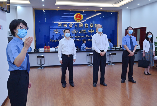 6月15日,最高人民检察院党组书记、检察长张军率最高检调研组一行考察了郑州市中原区检察院12309检察服务中心等,了解督导有关重点检察工作。