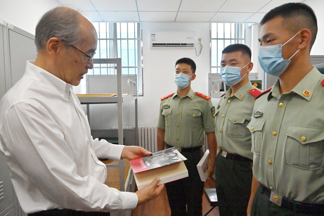 “无论酷暑严寒,各位战士赤诚奉献,默默坚守在岗位上,精准、优良地完成了各项急难险重任务,这无形中激励着最高检全体干警更好地履行法律监督职责,为党和人民贡献应有的力量。”在学习室,张军与驻院武警官兵一一握手、亲切交谈。在革命、建设、改革各个历史时期,人民军队牢记初心使命,听党话、跟党走,取得一个又一个辉煌胜利,为党和人民建立了不朽功勋。近年来,党绝对领导下的检察事业取得了新进步、新成效,同样离不开武警官兵的大力支持和辛勤付出。特别是常态化疫情防控工作中,驻院武警官兵冲锋险重在前、勇挑重担,为保障最高检机关各项工作有序高效运转作出了特殊贡献,展现了当代军人优良传统和时代风采。