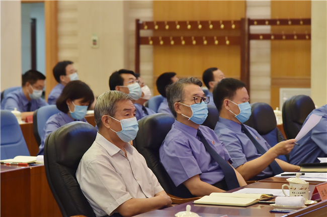 党史学习教育中央第十一指导组组长王秀峰及有关负责人到会指导。最高检党组副书记、常务副检察长童建明主持,全国四级检察院20余万名检察人员同堂聆听讲授。最高检领导、检委会专职委员,最高检机关全体人员在主会场参加会议。