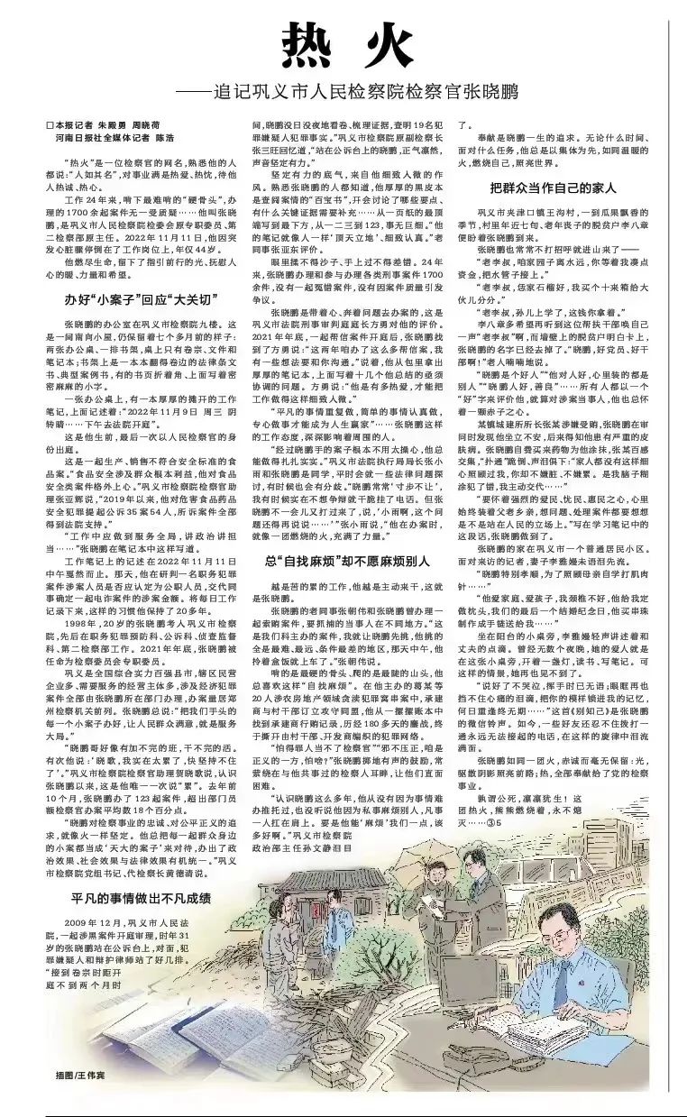 张晓鹏如同一团火,赤诚而毫无保留:光,驱散阴影照亮前路;热,全部奉献给了党的检察事业。