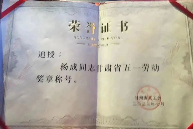 杨成同志不幸牺牲后,公安部政治部、省公安厅政治部、省公安厅交通管理局先后发来唁电,省总工会追授杨成同志甘肃省五一劳动奖章称号。