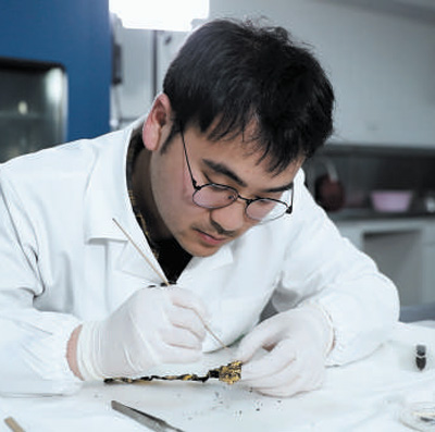 “文物修复是一个漫长的过程,在开展修复之前,需要做大量的清理和研究工作。”鲁海子说,拿金器来说,在提取之后,首先要对埋藏环境的泥土和金器上的附着物进行取样分析,然后再根据文物的受损状况绘制文物病害图,最后才是清理表面附着物并进行矫形。