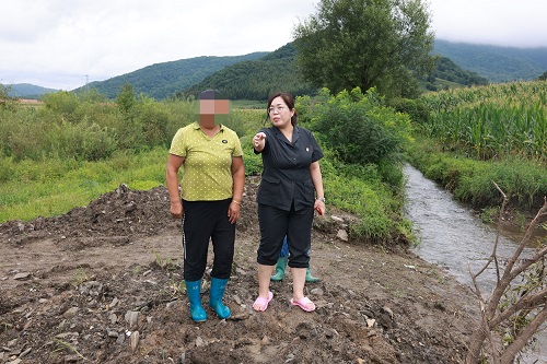 为了解决纠纷,老孙通过村里的“法官说事点”反映到了蛟河市人民法院新站法庭。8月22日,新站法庭的法官干警为此来到农田现场,法官干警踏着潺潺小河,走进田间地头,现场勘查了河道拓宽面积以及道路损毁程度。