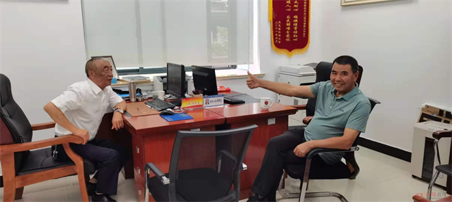 市委副书记、政法委书记郎文荣与吴强忠(左一)亲切交谈