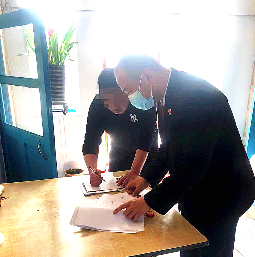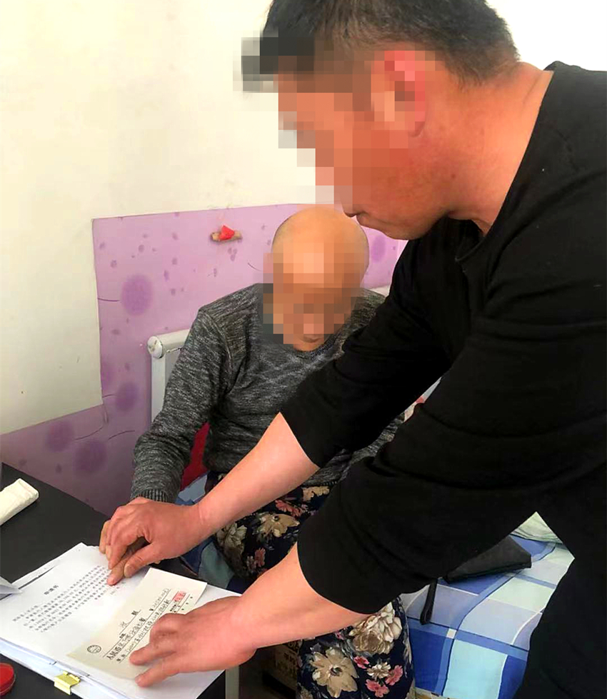 隋某的执行款终于有了着落,承办法官随即通知他到法院来办理相关领款手续。然而,现年48岁的隋某因糖尿病并发症恶化,加之患有严重的白内障,眼睛已经失明,每周还要做透析,生活完全靠亲属照顾。针对当事人的特殊情况,执行法官始终坚持人民至上及善意文明的司法理念,特意上门为隋某办理领款及授权委托等手续,于时便出现了开头的一幕。