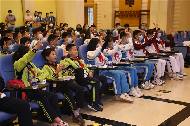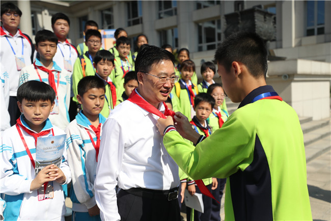 “近60年前,我和你们一样,也是一个系着红领巾,天天向上的热血少年呢!”身兼北京二中法治副校长的张军曾多次走上讲台,为师生们讲授生动的“开学第一课”。作为小朋友们的“老朋友”,再次系上红领巾的张军在开放日欢迎仪式上高兴地回忆起自己的“少年时光”,祝大朋友、小朋友们“六一”节日快乐。