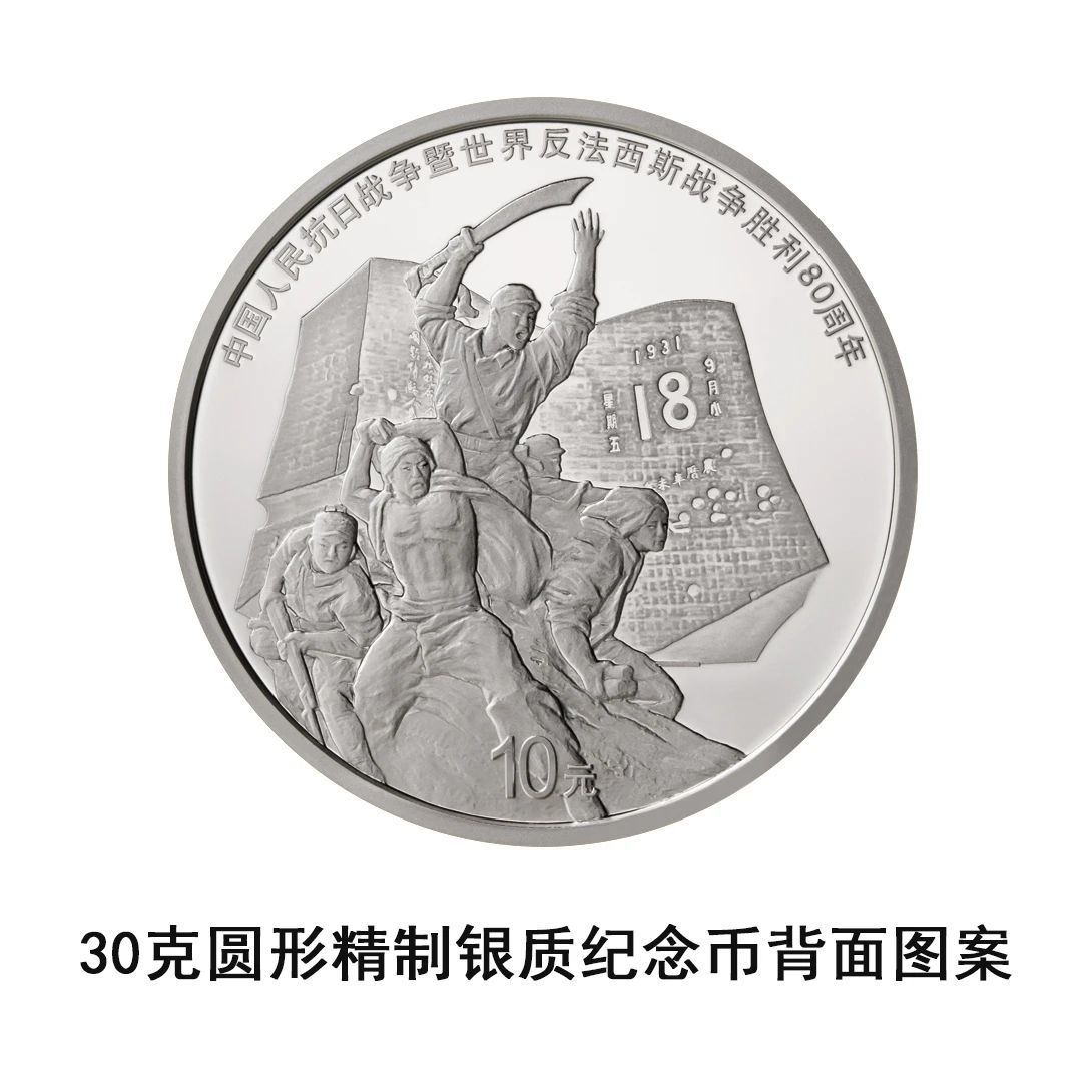 中国人民银行定于2025年9月3日起陆续发行中国人民抗日战争暨世界反法西斯战争胜利80周年纪念币。中国人民抗日战争暨世界反法西斯战争胜利80周年纪念币共4枚,其中双色铜合金纪念币1枚,8克金币1枚,150克银币1枚,30克银币1枚,均为中华人民共和国法定货币。