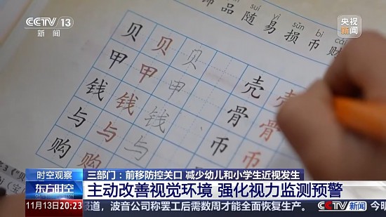 《通知》提出,家长要改变重治轻防的观念,科学管控孩子电子产品使用时间,学校通过“学校明亮工程”等,改善教室、宿舍、图书馆(阅览室)等采光和照明条件,为幼儿园和普通中小学生改善用眼环境。防控儿童青少年近视需要政府、学校、医疗卫生机构、家庭、学生等各方面共同努力,需要全社会行动起来,共同呵护好孩子的眼睛。(采集:陈翠平、卢秋月 整理:文静 来源:央视新闻客户端)