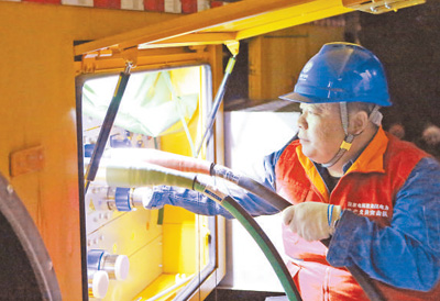 8月8日,黑龙江省牡丹江供电公司抢修人员在为10千伏级应急电源车连接线路。 |