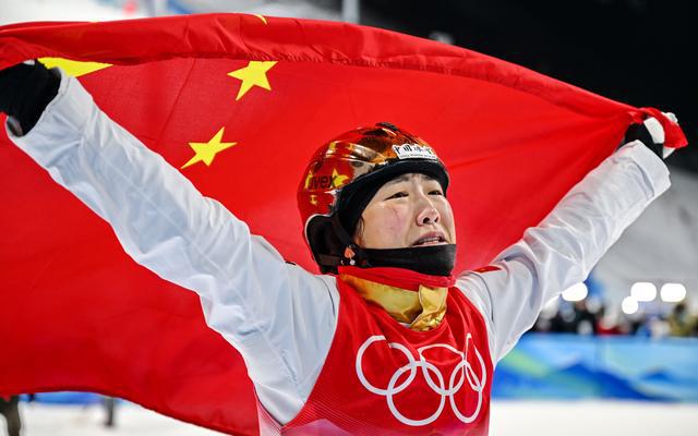 赛后,实现梦想的徐梦桃身披国旗,久久不愿离开赛场。她感慨道:“这么多年我真是太难了,努力可能会迟到,但不会白费!”