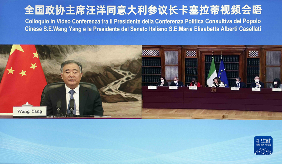 新华社北京4月12日电 (记者伍岳)全国政协主席汪洋12日在北京以视频方式会见意大利参议长卡塞拉蒂。
