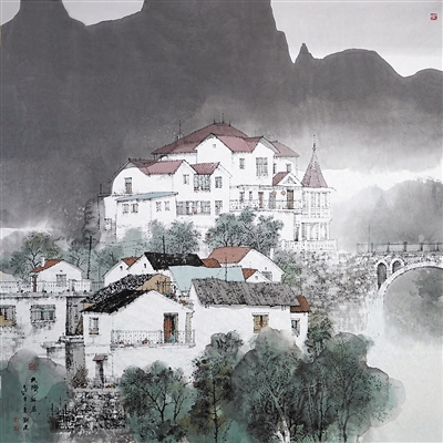 刘建中国画《大湾新居》。 |