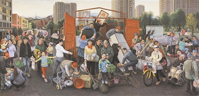 在现实题材美术创作中,不少美术工作者力图通过描绘城乡发展欣欣向荣的景象,艺术表达对住房发展成就的切身体会,深刻表现时代之变化、中国之进步。