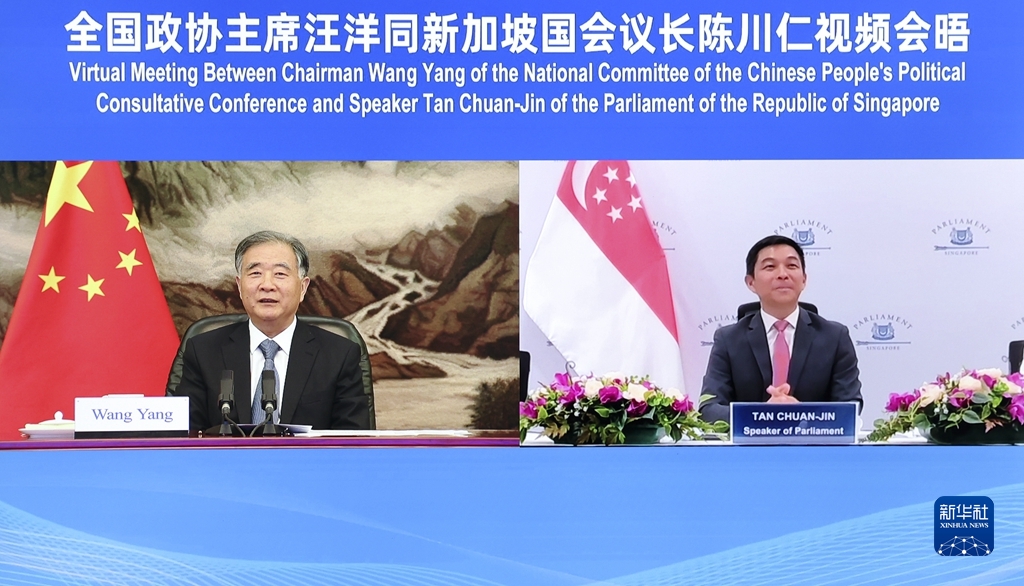 新华社北京6月6日电 (记者朱超)全国政协主席汪洋6日在北京以视频方式会见新加坡国会议长陈川仁。