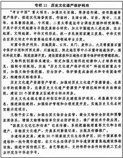 树牢保护历史文化遗产责任重大的观念,增强对历史文物的敬畏之心。全面加强考古工作,健全“先考古、后出让”制度。加强文物科技创新。统筹指导各类文物资源普查和名录公布,编制文物保护单位保护规划等专项规划,纳入国土空间规划实施。推进世界文化遗产申报、保护管理和展示宣传。加强不可移动文物和馆藏文物保护修复。加大流失文物追索返还工作力度。推进文物合理利用,建设国家考古遗址公园、文物保护利用示范区、文化遗产廊道,推介以文物资源为载体的国家文化地标和中华文明标识体系。实施中华文物全媒体传播计划。健全文物安全长效机制,严厉打击文物犯罪。