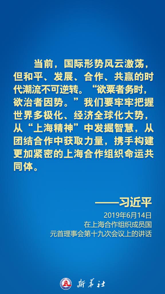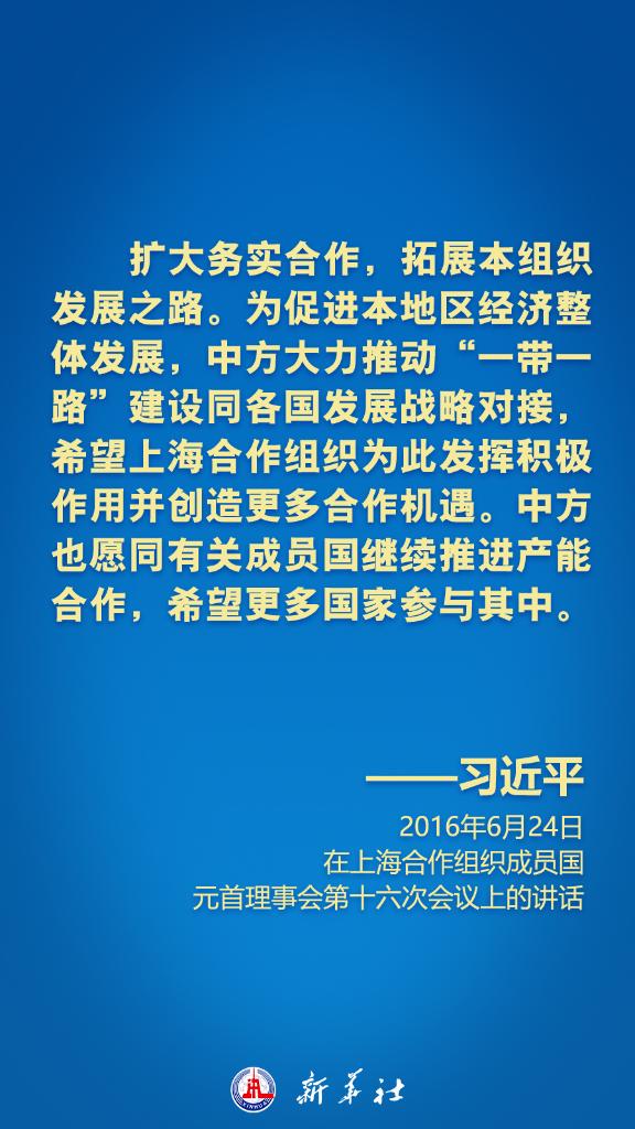2013年以来,习近平主席出席了上合组织历次峰会并发表重要讲话,就深化上合合作提出中国主张,坚定倡导“上海精神”,为打造更加紧密的上合组织命运共同体注入强劲动力。