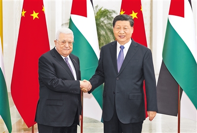 习近平指出,中巴两国是相互信任、彼此支持的好朋友、好伙伴。中国是最早承认巴勒斯坦解放组织和巴勒斯坦国的国家之一,始终坚定支持巴勒斯坦人民恢复民族合法权利的正义事业,推动巴勒斯坦问题早日得到全面、公正、持久解决。中方支持巴勒斯坦成为联合国正式会员国,将继续在多边场合为巴方仗义执言、主持公道,愿继续向巴方提供力所能及的援助,帮助巴方缓解人道主义困难、开展重建。中方愿同巴方以建立战略伙伴关系为契机,继续在彼此核心关切问题上坚定相互支持,全面推进各领域友好合作,深化共建“一带一路”合作,加快中巴自由贸易协定谈判,加强治国理政经验交流,赓续传统友好。