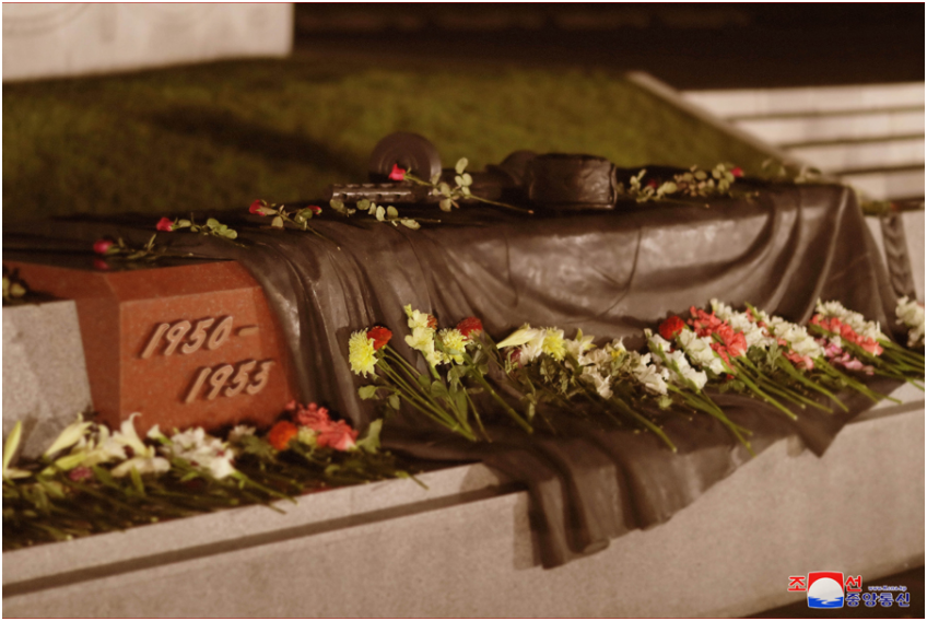 朝中社称,金正恩向那些光荣维护国家主权和尊严、创造出朝鲜革命传承的光辉历史的伟大年代的英雄们致以崇高的敬意。