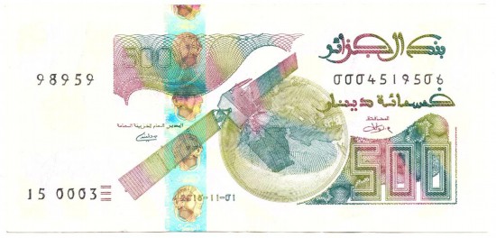 阿尔及利亚一号通信卫星印在当地纸币上。