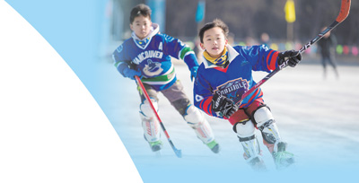 2021年1月21日,在内蒙古自治区呼和浩特市的公园冰场里,小朋友在进行冰球训练。 |