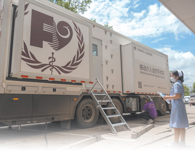 实施手术的移动介入治疗手术车上装有超声机、手术床、监护仪及多项专利设备,并装备了层流消毒系统,医生可以在车厢内直接为患者进行手术,在实时超声的引导、监视下,完成穿刺活检、置管、消融治疗等操作。中国医生把心血管手术从门诊手术转化为“上门手术”,减少了老挝当地患者和家属的奔波之苦。
