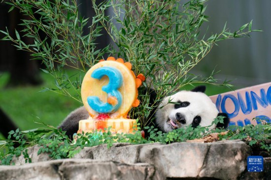 新华社华盛顿8月21日电 在美国首都华盛顿史密森学会国家动物园出生的雄性大熊猫幼崽“小奇迹”21日迎来3岁生日。