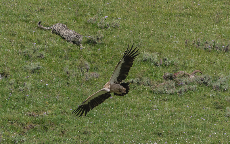 昂赛大峡谷记录到的雪豹和高山兀鹫。 李梓豪摄
