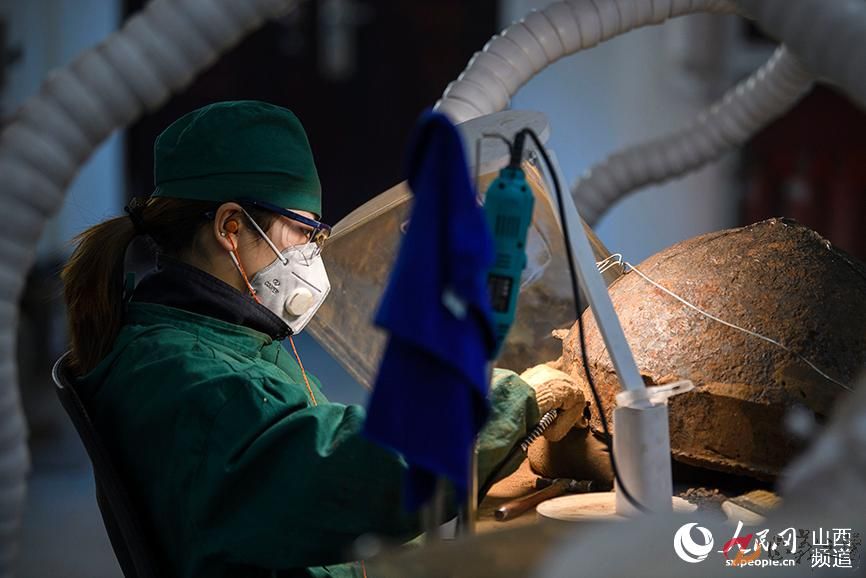 专业人员在可移动文物保护修复室工作。 人民网记者 翁奇羽摄
