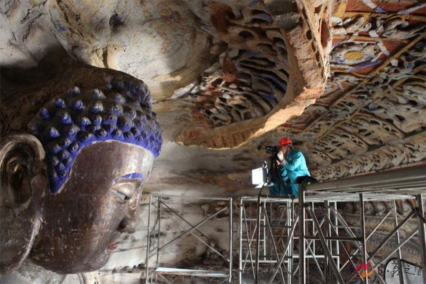 云冈石窟第9窟数字化采集现场。 云冈研究院供图