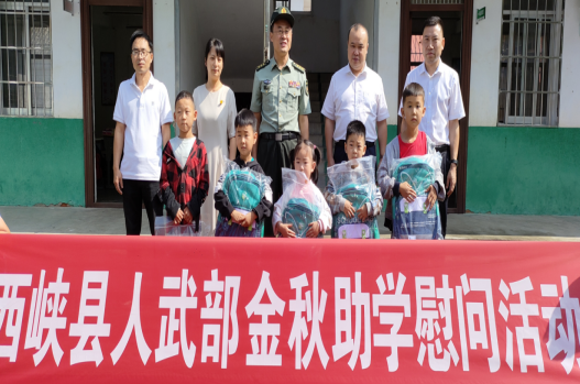 正义之声网讯【通讯员:闫康 胡冬】9月14日,西峡县人武部部长卢成轶到二郎坪镇栗坪村小学,开展秋季助学慰问活动,二郎坪镇党委书记赵丹,镇长刘源参加助学活动。