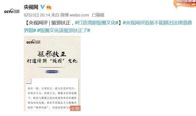另一篇针对粉丝经济的文章《央视网评|驱邪扶正,打造清朗饭圈文化》则指出,对于当前“饭圈”文化,是时候驱邪扶正、清污去垢了。从无序走向规范,不仅是治理当前“饭圈”乱象的必要举措,也是“饭圈”生存发展的应有之义。