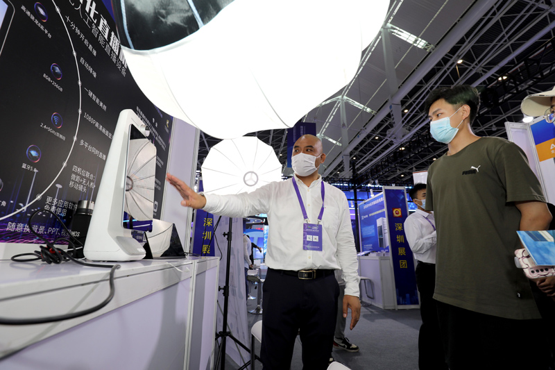 9月6日,参观者在博览会上参观了解智能直播设备。