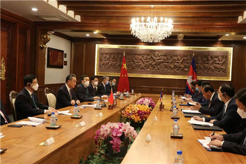 王毅指出,今年是中国共产党百年华诞,也是柬埔寨人民党成立70周年,习近平总书记和洪森主席互致贺信,为中柬全面战略合作伙伴关系发展提供战略引领。中方愿同柬方落实好两国领导人共识,以中柬命运共同体行动计划为主线,统筹开展各领域交往合作,推动双边关系持续高水平发展。
