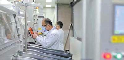 中科院物理所怀柔园区清洁能源材料测试诊断与研发平台上,科研人员正在调试全自动软包电池生产线。中国科学院物理研究所供图 |