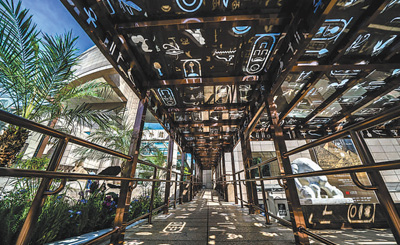 上海博物馆人民广场馆“金字塔之巅:古埃及文明大展”观展通道。 |