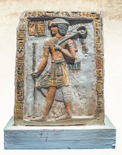 “金字塔之巅:古埃及文明大展”第一展厅“法老的国度”中的展品—石灰岩彩绘碑。 |