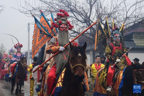 陇县古称陇州,是“中国社火文化之乡”,当地耍社火的历史可追溯至两千多年前。马社火以演员骑于马上而得名,是陇州社火最具代表性的形式之一。社火队由村民自发组成,每逢元宵节前,队员面绘脸谱,身穿戏服,骑于马上,于行进中演绎神话和历史故事,将新春祝福送至家家户户。